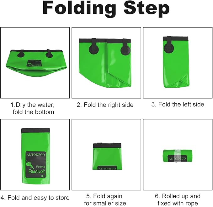 - Multi-purpose Fold Bucket: This AUTODECO Collapsible bucket is ideal for camping, fishing, traveling, boating, hiking, gardening, picnic, outdoor activities, daily use and car washing. It can be used as fish bucket, ice bucket, fruits and veggies basket, travel basin, coaches bucket for baseball, etc. 2 buckets of different color are good for separate usage