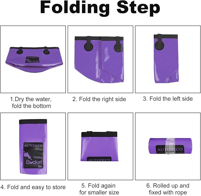 - Multi-purpose Fold Bucket: This AUTODECO Collapsible bucket is ideal for camping, fishing, traveling, boating, hiking, gardening, picnic, outdoor activities and daily use. It can be used as fish bucket, ice bucket, fruits and veggies basket, travel basin, coaches bucket for baseball, etc