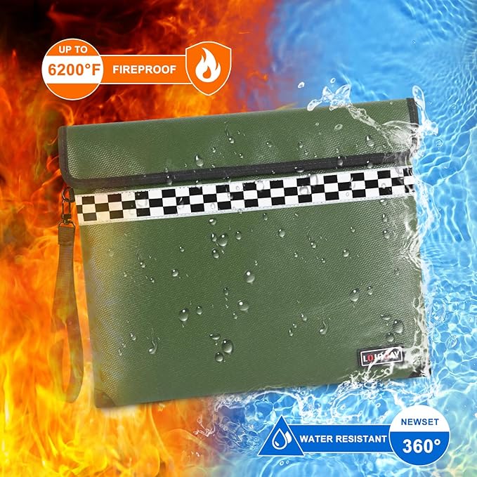 - 360° Fireproof and Double Safety Design: This LOJGARY fireproof bag not only upgrated to 9-layer function material structure of fire protection and heat insulated but also upgrated the zipper to professional fireproof and water resistant to make sure your valubles Double Safety; The fireproof money bag for cash is sewn with flame-retardant thread and fireproof hemming, to prevent fire from damaging the fireproof bag from the edge, it is closure by fireproof flap which make the fire proof money bag for cash 360°fire resistant.