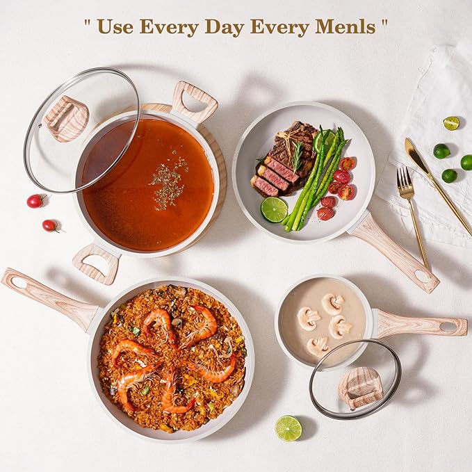 - Safe, Non-Toxic Cookware You Can Trust - Designed for healthier, worry-free cooking. Crafted with a durable granite non-stick coating free from harmful chemicals like PFOS, PFOA, lead, and cadmium, this pots and pans set ensures your meals are as clean and wholesome as the ingredients you use.