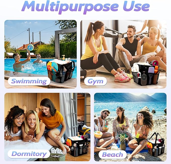 - 【Multipurpose Use】The shower tote bag provides a convenient and streamlined way to carry a wide range of bathing essentials, towels, and clothing.It is highly suitable for students living in dorms. And it is also an excellent choice for people going camping, gym, swimming, traveling, and beach, etc.