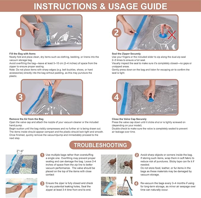 - Reliable protection: Made from extra thick plastic material, with the triple-seal turbo valve & double-zip seal design, our vacuum sealed bags get the air out in the suction process; Can be used repeatedly