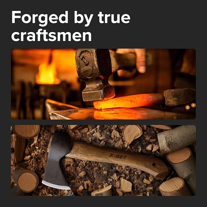 - HAND-FORGED DESIGN: The handcrafted design of this hatchet axe brings you back to the old days. Now you can rediscover true craftsmanship with this splitting axe. The design of this camping hatchet is meant to imitate what true craftsman back in the day would’ve used.