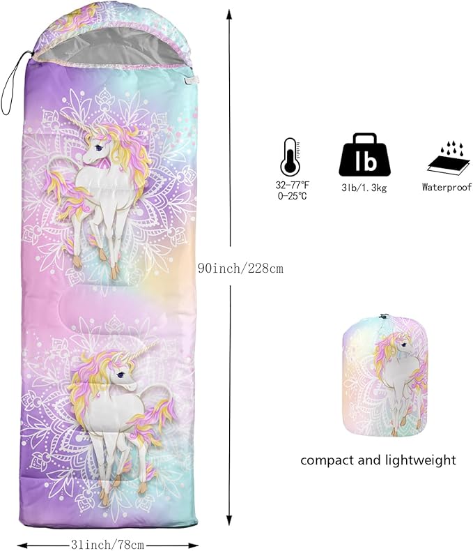- ๐ใFashion DesignใSIZE - 31 by 90 inches (W x D). Our sleeping bag can be used in 3 seasons with a design temperature of 32โ-77โ(0โ-25โ). These bags also have a weather resistant waterproof design to keep you warm and prevent you from any dampness.