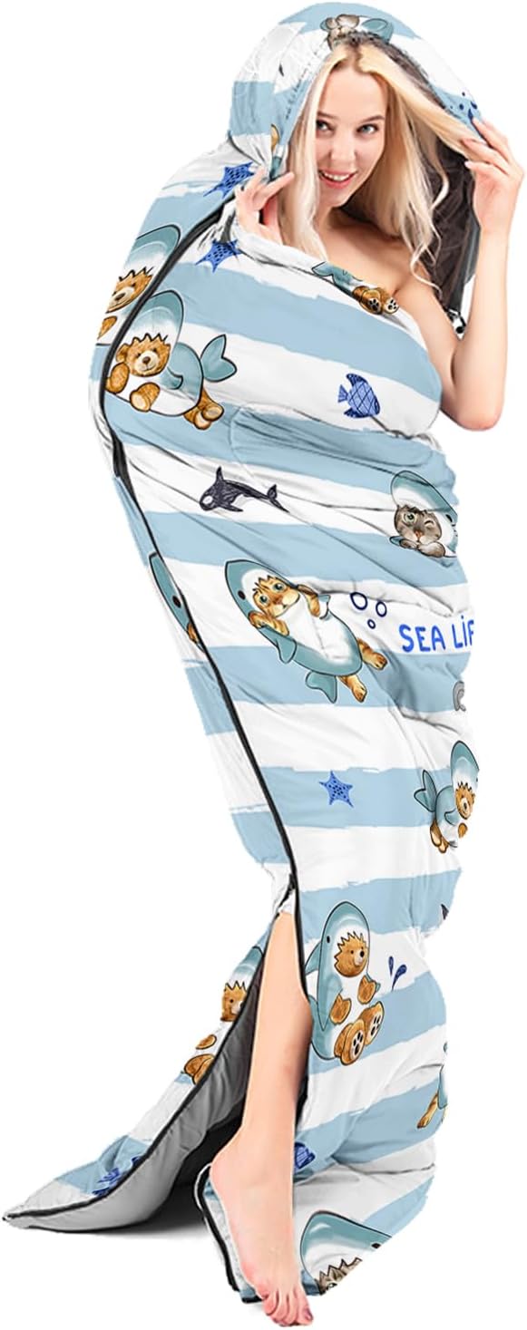 - ๐ใFashion DesignใSIZE - 31 by 90 inches (W x D). Our sleeping bag can be used in 3 seasons with a design temperature of 32โ-77โ(0โ-25โ). These bags also have a weather resistant waterproof design to keep you warm and prevent you from any dampness.