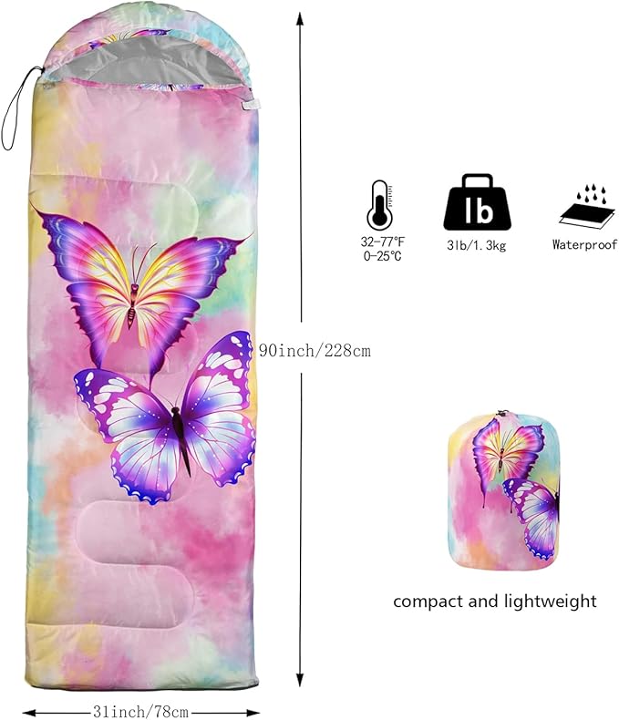 - ๐ใFashion DesignใSIZE - 31 by 90 inches (W x D). Our sleeping bag can be used in 3 seasons with a design temperature of 32โ-77โ(0โ-25โ). These bags also have a weather resistant waterproof design to keep you warm and prevent you from any dampness.