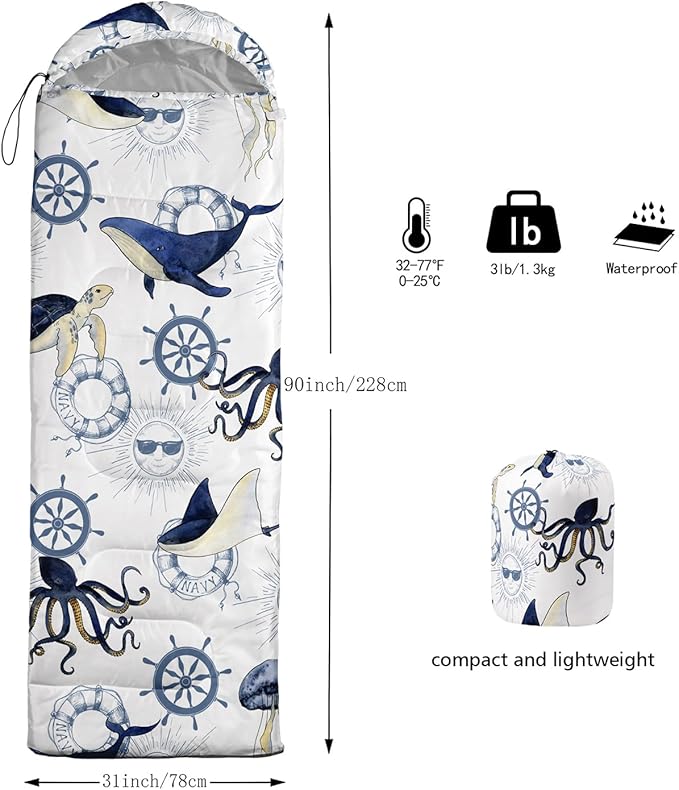 - ๐ใFashion DesignใSIZE - 31 by 90 inches (W x D). Our sleeping bag can be used in 3 seasons with a design temperature of 32โ-77โ(0โ-25โ). These bags also have a weather resistant waterproof design to keep you warm and prevent you from any dampness.