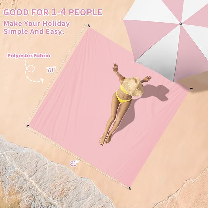 - ๐ดBeach Blanket Waterproof Sandproof:78''ร81''size beach blanket,suit for 1-4 adults. Made by parachute fabric,odorless,tear-resistant 210T polyester.Light weight and small after folding.Only 12 oz,small and mighty,which is easy to carry!