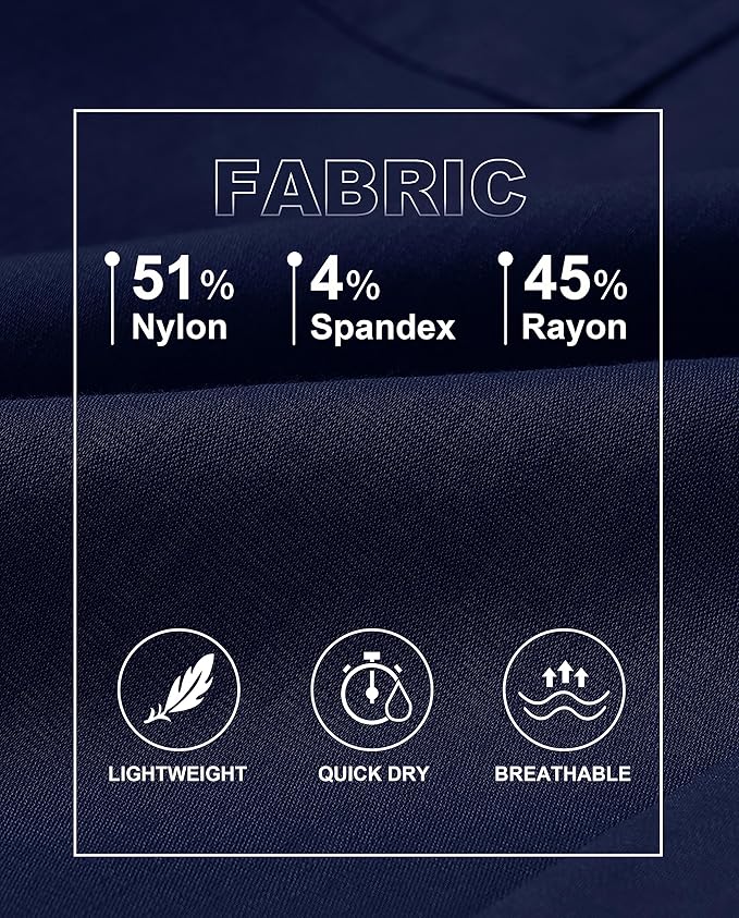 - Fabric is lightweight, quick dry, slightly elastic, breathable and comfortable, keeping you cool and fresh throughout the summer.