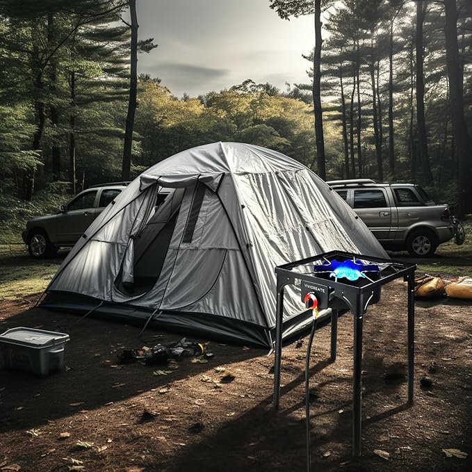 - ๐ฅ Space-Saving Design: Open-frame design lets you place a standard propane tank under the burner, saving room and reducing clutter in tight outdoor setups