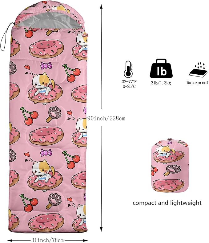 - 【Fits For 3 Seasons】: Size - 31 by 90 inches (W x D). Our sleeping bag can be used in 3 seasons with a design temperature of 32℉-77℉(0℃-25℃). These bags also have a weather resistant waterproof design to keep you warm and prevent you from any dampness.