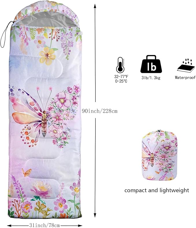 - 【Fits For 3 Seasons】: Size - 31 by 90 inches (W x D). Our sleeping bag can be used in 3 seasons with a design temperature of 32℉-77℉(0℃-31℃). These bags also have a weather resistant waterproof design to keep you warm and prevent you from any dampness.