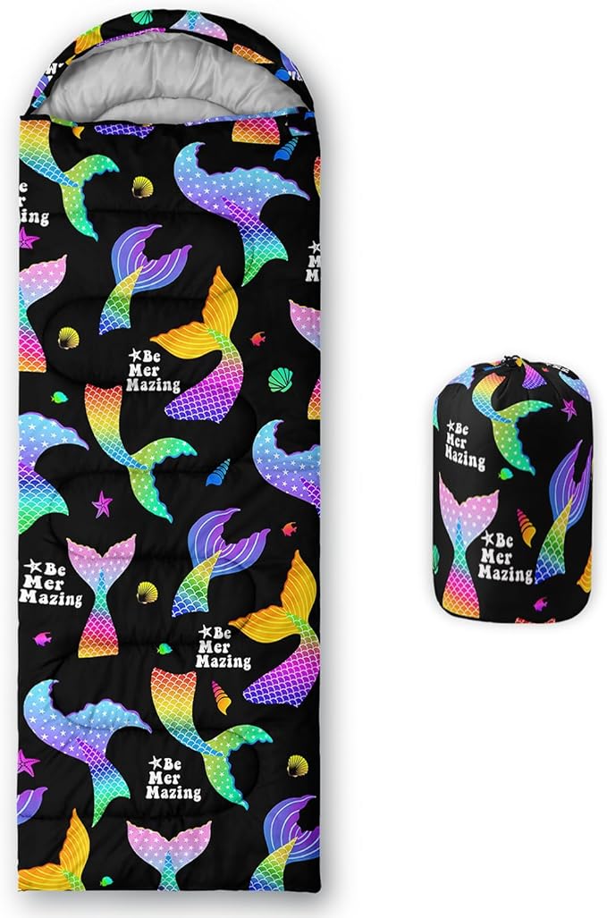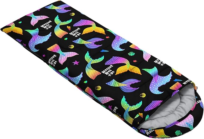- A THOUGHT OUT DESIGN: Drawstring allows you to tighten hood and keep you warm. The idea of having a zipper at the foot to allow more warm or cool air to enter or exit the bag in different times of the season.Our Mermaid Shell sleeping bags are designed to provide much needed rest after a full day of outdoor activities.