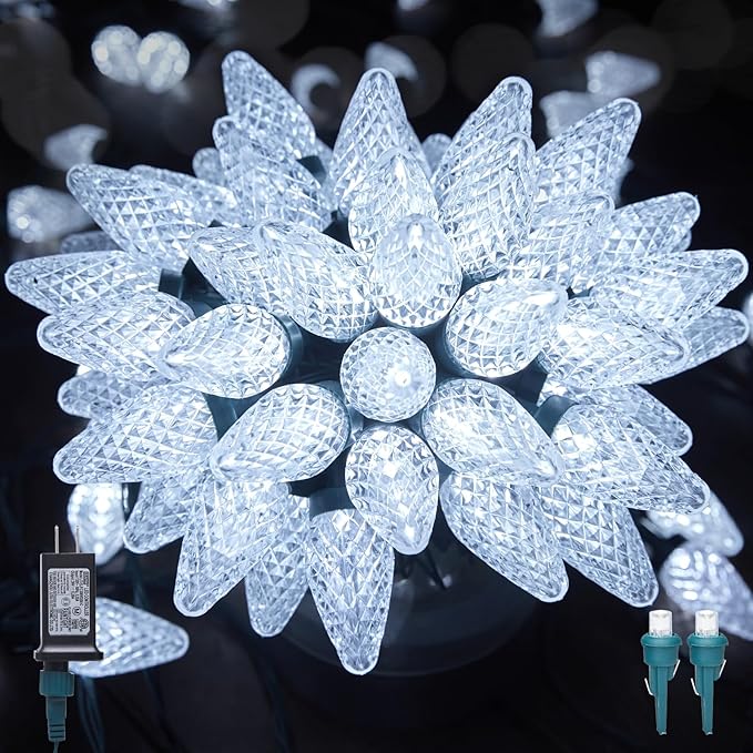 - Old Fashioned C9 LED String Lights: UL listed C9 holiday lights, 81.7 feet with 102 shatterproof diamond faceted strawberry bulbs(2 spare bulbs), plug in and start pure white lighting show, using magic wand to shake this C9 LED Christmas lights on or off to realize your childhood dream or to give a surprise to the family, children or kids