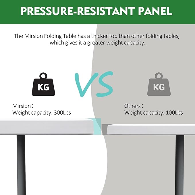 - EASY TO STORE AND CARRY: The MIRSION Folding Table is the perfect solution for outdoor parties and events. The large folding table comes with convenient side-locking handles, allowing you to easily carry and transport it anywhere.
