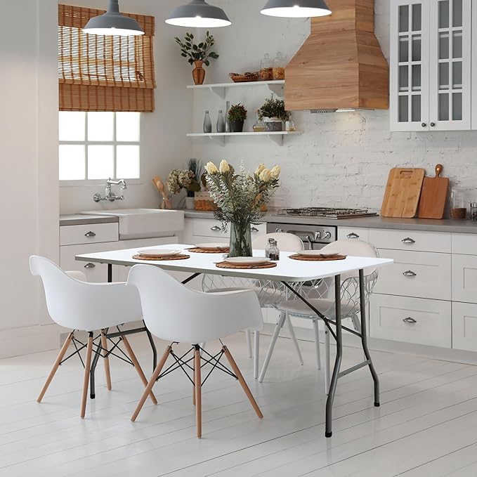- EASY INSTALLATION: No assembly required! Simply unfold the table and lock the legs into place for a secure and stable tabletop. Rectangular design provides plenty of space for dining, playing games or displaying party decorations.