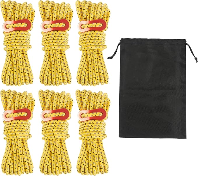 16.4ft 6 Pack 4mm Guy Lines Ultralight Tent Cords with Aluminum Adjuster Tensioner Outdoor Camping Guylines Ropes for Tent Tarp,Climbing,Hiking Backpacking (Yellow)