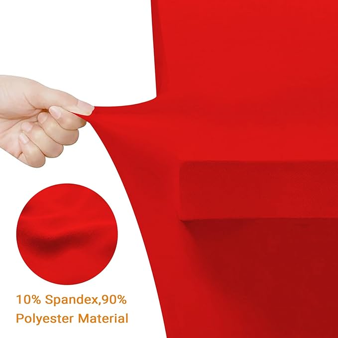 - DURABLE & SPANDEX: The stretch spandex rectangular table cover was made from 10% Spandex, 90% Polyester material, wrinkle and stain resistant stretch spandex fabric with a 200 GSM, which make tablecloth more stretchable and durable, does not require ironing and can be laundered countless times.