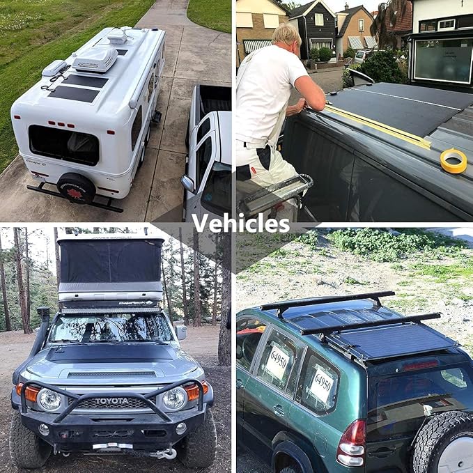 - Ultra-thin:At only 3mm thick, the solar panel is powerful, waterproof, lightweight, durable, and highly resistant to the harsh operating conditions of a marine environment.Lightweight,weigh approximately 30% of a glass framed one. They’re a great choice where you want big power without sacrificing fuel economy, or don’t want any extra weight on your roof that may affect your center of gravity.