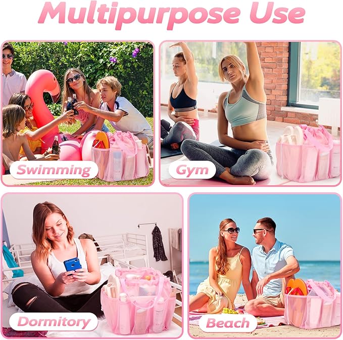 Mesh Shower Caddy Portable with Drawstring, Dorm Room Essentials for College Students Girls, Large Shower Bag for Camping,Swimming,Gym,Travel,Bathroom - Pink