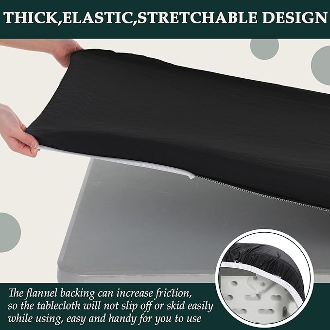 - Thick and Reliable: the 6ft table covers fitted for outdoor are made of quality PVC vinyl and flannel backing, elastic and sturdy, not easy to break or fade, reusable and strong, waterproof and stain resistant, and the plastic vinyl camping tablecloths are stretchable to firmly cover the table