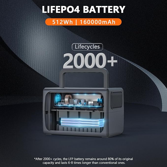 ALLWEI 500W Solar Generator with 100W Solar Panel, 512Wh LiFePO4 Portable Power Station with AC Outlets(1000W Surge), Battery Generator for RVs Outdoor Camping CPAP Home Backup Power Outage