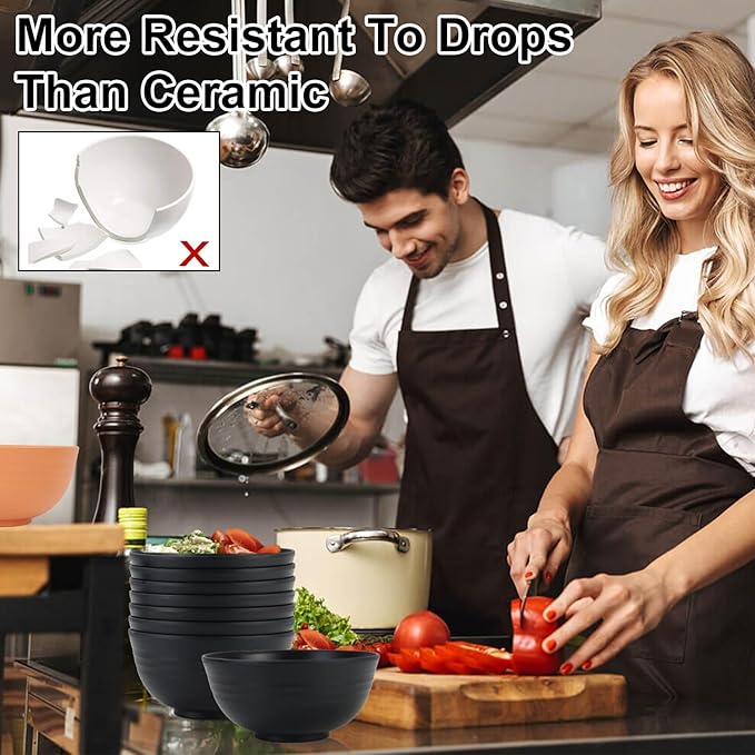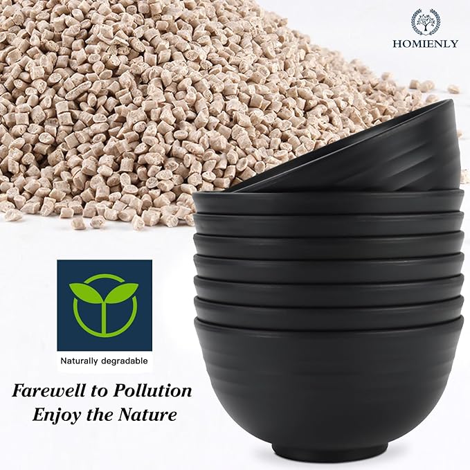 Homienly Cereal Bowl Set, Wheat Straw Bowls for Kitchen, Unbreakable Lightweight Bowl Set of 8, Microwave and Dishwasher Safe Bowls, Reusable Bowl for Serving, Cereal, Snack,Fruit(Black, 26 OZ)