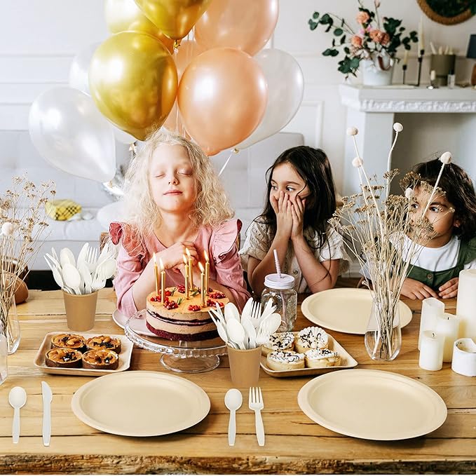 Gezond Compostable Spoons 150 Pack 6.7 Inch Disposable Spoons No Plastic Biodegradable Cutlery Set Heavy-duty for Party Wedding Camping Office Picnic