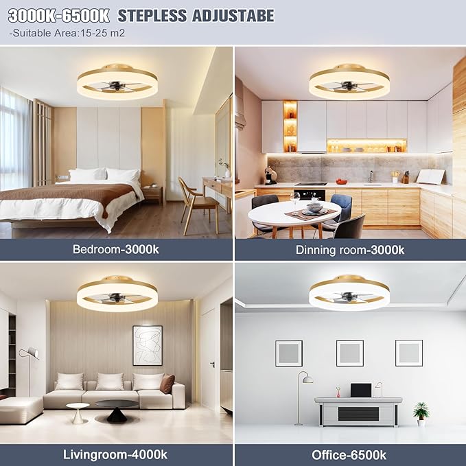 - 【Smart & Dimmable Light 】This ceiling fan with lights offers smart and dimmable features, allowing you to conveniently adjust the brightness and customize the color temperature via both the remote control and the mobile App. Whether you require bright, cool lighting for a workspace or warm, cozy lighting for relaxation, this LED ceiling fan with light and remote provides versatile options to create your desired ambiance. Recommended for rooms sized between 15-25 m², it ensures optimal airflow and lighting coverage for a comfortable environment.