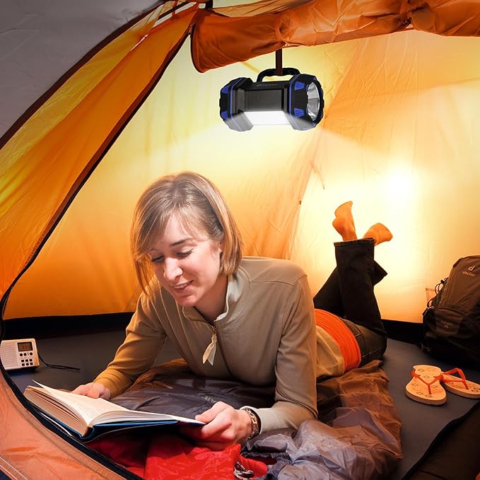 - [HIGH BRIGHTNESS] - This camping lights rechargeable main beam gives out brightness up to 1500 lumen with a long illumination distance of 500m (1640ft), Cast bright light for your activities, hiking, fishing, hunting, camping, outdoor emergencies