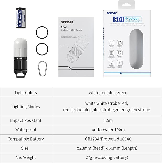 - 【Signal Light for Location】By attaching the XTAR SD1 marker light to BCD or diving tanks, it becomes easy for your buddy to locate you when diving in dark or deep sea conditions,it will function up to 100m underwater. And it can also be used for other night outdoor activities, such as camping, caving, group outings at night, team tag, etc