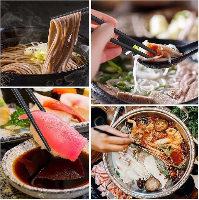 - Versatile Usages: you can use our fiberglass chopsticks set to taste some classic Asian food, such as dumplings, noodles, sushi, lamian noodles, hot pot, and more; Besides, they are also suitable for restaurants, kitchens, schools, offices, canteens, picnics, and other places