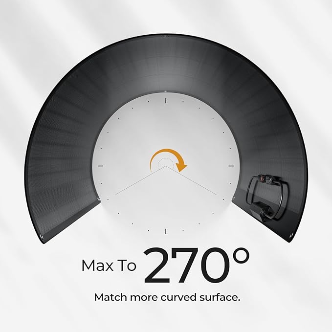 - Max To 270° Flexible. Matches more curved surfaces, allowing you to install where rigid solar panels cannot. Make full use of the limited space on the roof or even the curved part of the front of the car.