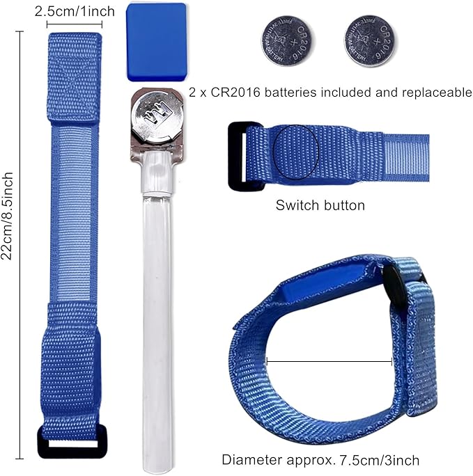 - 【Easy to use】Powered by 2 CR2016 batteries are included and installed, so you can start using it right away. The battery is also replaceable, so you can easily swap it out when it runs out of power. Additionally, if the nylon bracelet gets dirty, you can remove the battery pack and wash the bracelet, making it reusable.