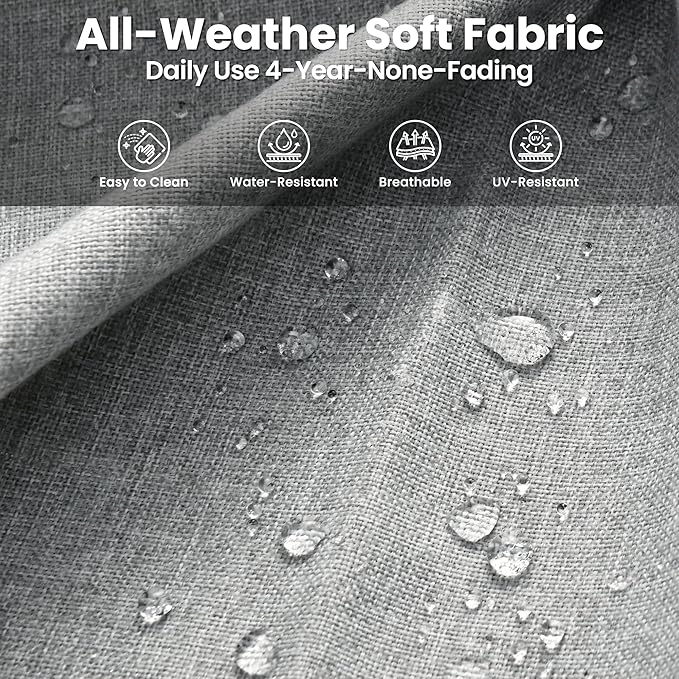 - Thickened Outdoor Cushion: 3.54 inches upgraded high-density and high resilience sponge cushions for comfortable sitting and support. Breathable fabric is water-resistant and and the zipper design is removable and washable
