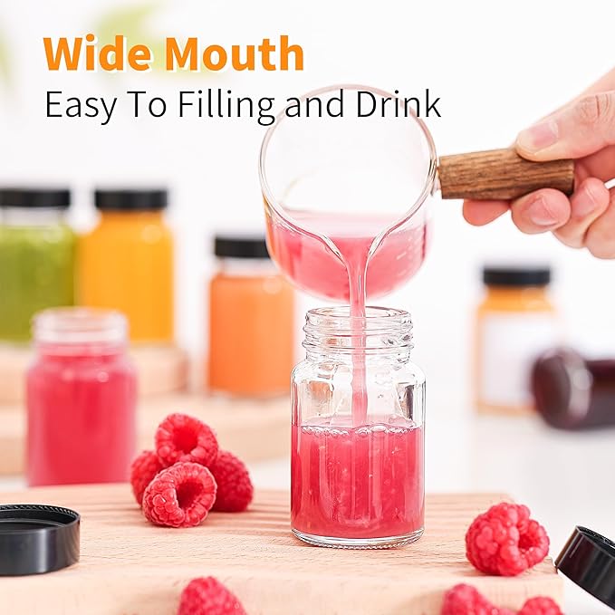 - Wide Mouth: At 1.1 inches in diameter, these shot bottles are wider than other glass bottles and can be easily filled or drunk without the use of a funnel; You can even store ginger, spices, syrups, or other liquid items.