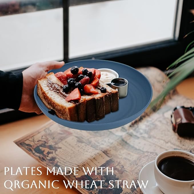 - WHEAT STRAW MATERIAL: Each 10 inch blue plastic plates is constructed with organic wheat straw fiber and food-grade PP, 100% BPA free, non-toxic, odorless, and friendly