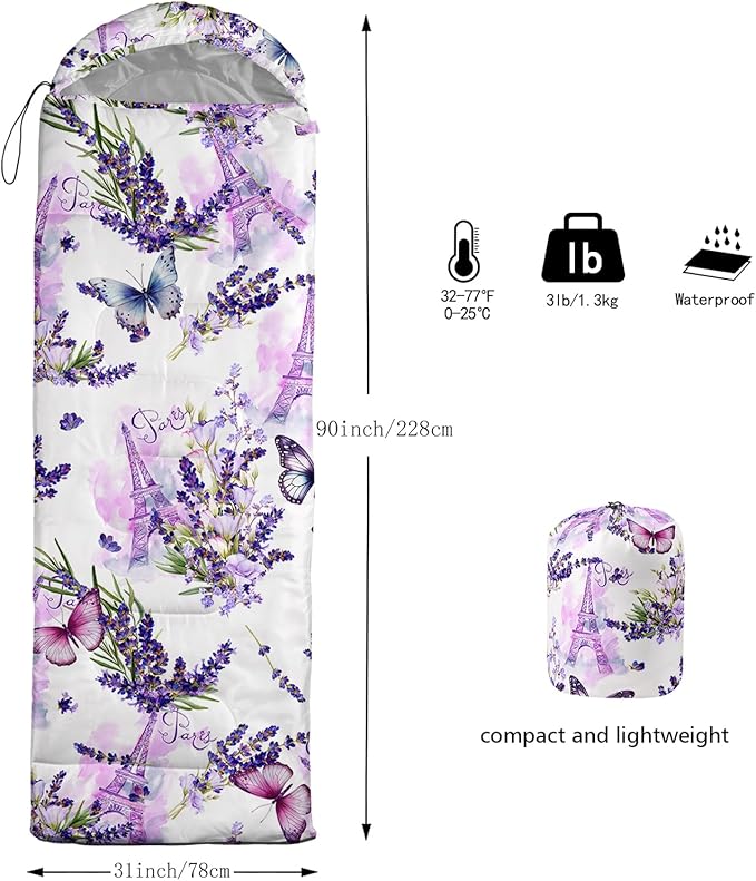 - 【Fits For 3 Seasons】: Size - 31 by 90 inches (W x D). Our sleeping bag can be used in 3 seasons with a design temperature of 32℉-77℉(0℃-32℃). These bags also have a weather resistant waterproof design to keep you warm and prevent you from any dampness.