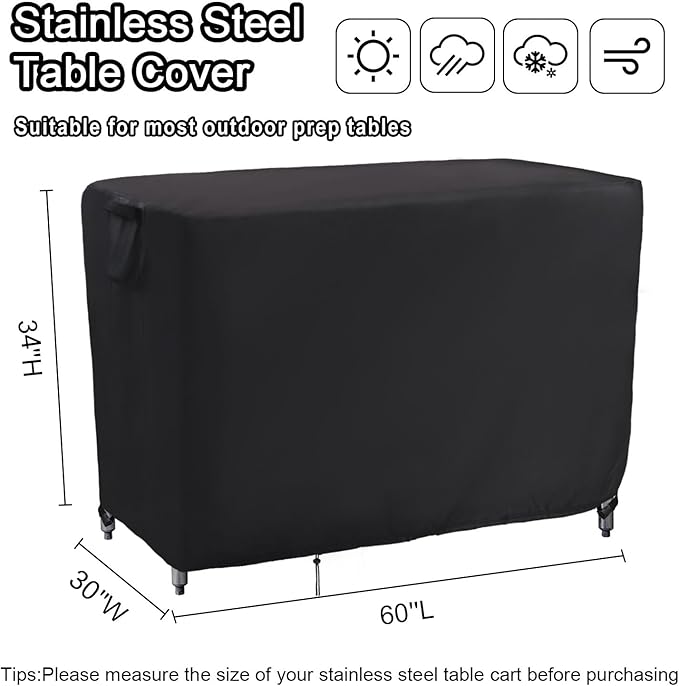 - Outdoor Prep Table Cover : This cover protects your outdoor stainless steel table from rain, snow, sunlight, dust, etc. (Please measure the size of your stainless steel table cart before purchasing)