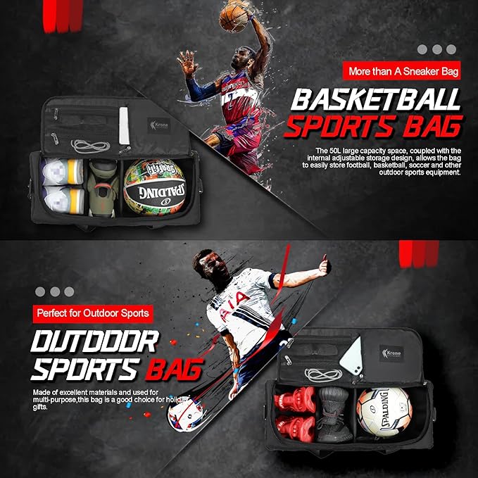 Sneaker Bag for Travel/Sneakerhead gift/Outdoor Sports Bag/Gym Bag /, A Multi-functional Travel Duffel Bag with 3 Adjustable Dividers, & Shoulder Strap,Made of Nylon, by Krone Kalpasmos-classic