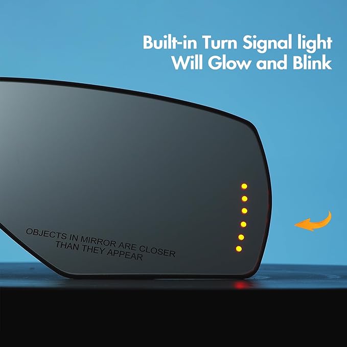 - 【Signal mirror】Passenger side replacement mirror Built-in LED turn signals that illuminate and flash when turning