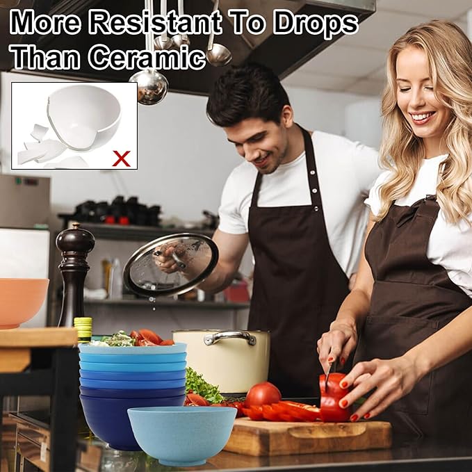 Homienly Unbreakable Cereal Bowls Set of 8-26 OZ Soup Bowls Microwave and Dishwasher Safe Wheat Straw Bowl Assorted Color Dessert Bowls for Serving Soup, Oatmeal, Pasta and Salad (Gradient Blue)