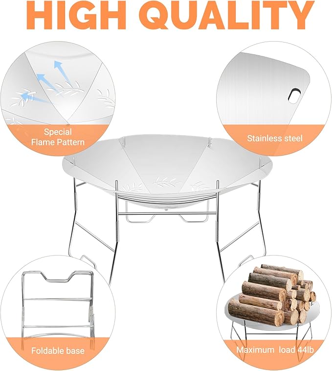 - 【Best Choice for Ourdoor】Our portable fire pit is best choice for outdoor wood burning such as camping, outdoors picnic, beach, garden, trekking, barbecue, fishing, climbing, etc. Put it into bag and enjoy your outdoor life!