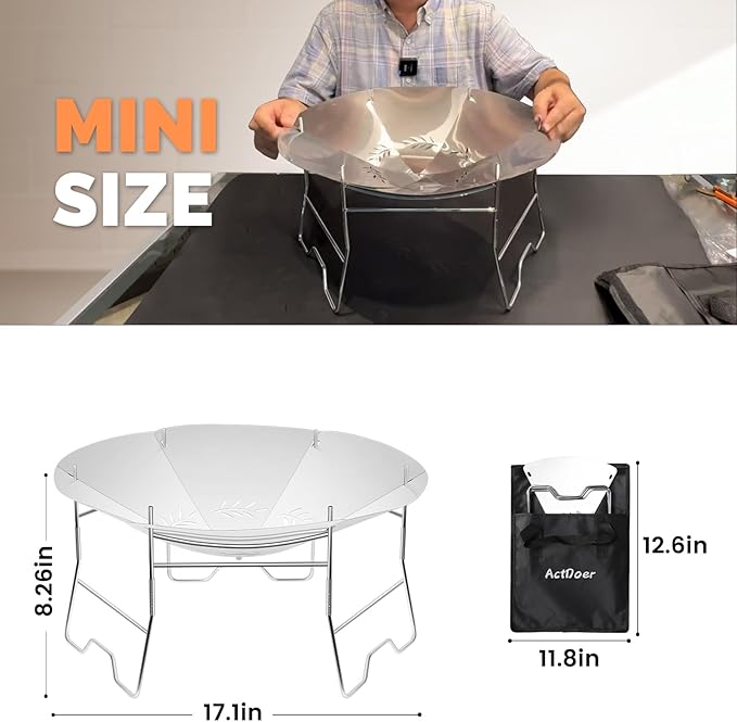 ActDoer Portable Camping Fire Pit - 17 inch Wood Burning Fire Pit with Storage Bag - Camping, Picnics, Backpacking, Outdoor Heating