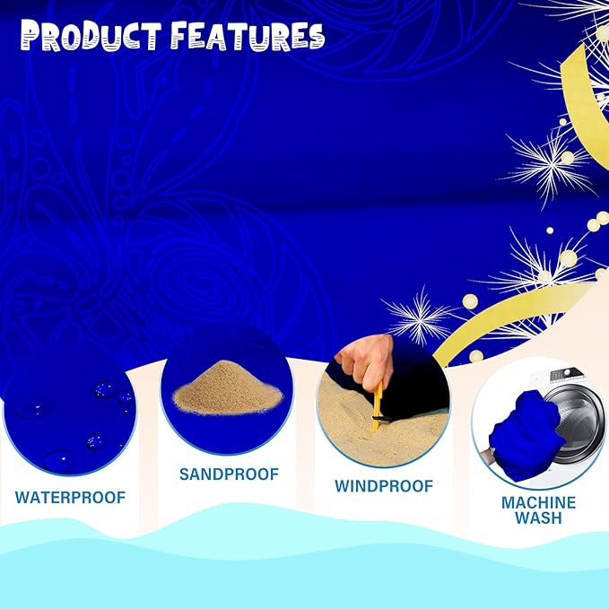 - ๐BIG BEACH BLANKET:Durable and fast drying,can also be used as a canopy,sunshade,tent,toddler crawling mat,picnic mat,first aid mat,better professional fabric sewing without irritating the skin,providing you a good sense of use.