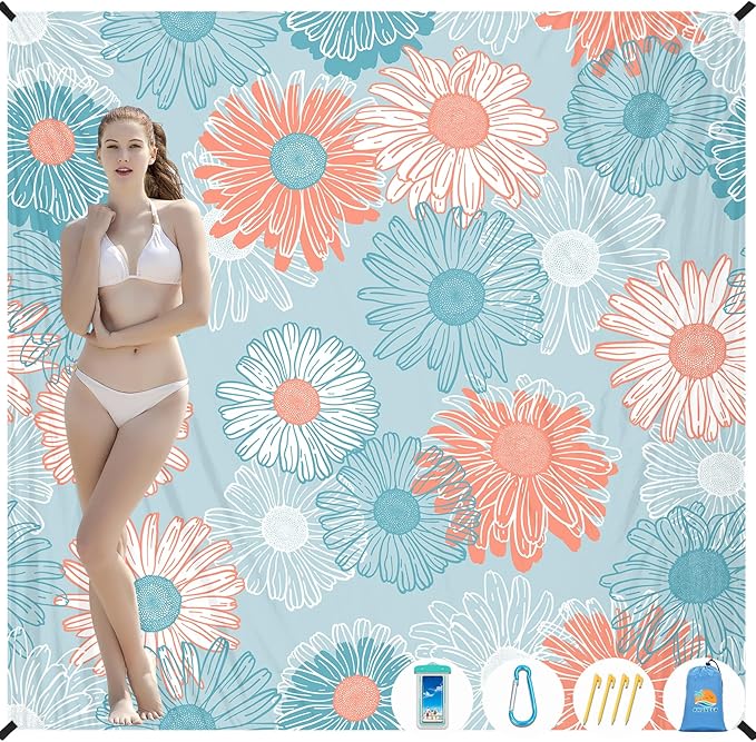 - ๐BIG BEACH BLANKET:Durable and fast drying,can also be used as a canopy,sunshade,tent,toddler crawling mat,picnic mat,first aid mat,better professional fabric sewing without irritating the skin,providing you a good sense of use.