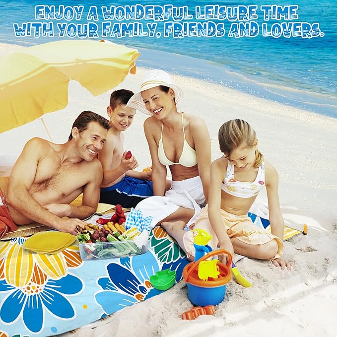 - ๐BIG BEACH BLANKET:Durable and fast drying,can also be used as a canopy,sunshade,tent,toddler crawling mat,picnic mat,first aid mat,better professional fabric sewing without irritating the skin,providing you a good sense of use.