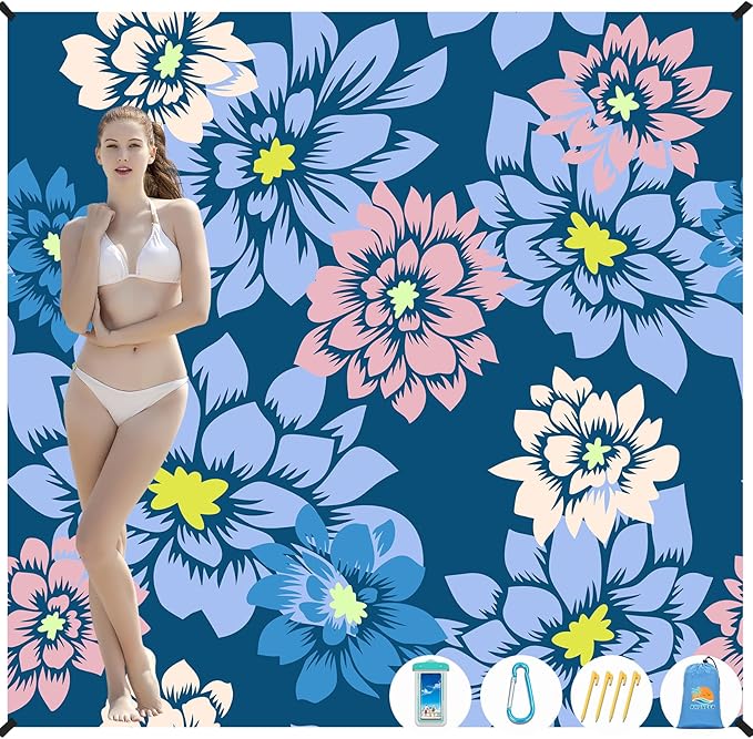 - ๐BIG BEACH BLANKET:Durable and fast drying,can also be used as a canopy,sunshade,tent,toddler crawling mat,picnic mat,first aid mat,better professional fabric sewing without irritating the skin,providing you a good sense of use.