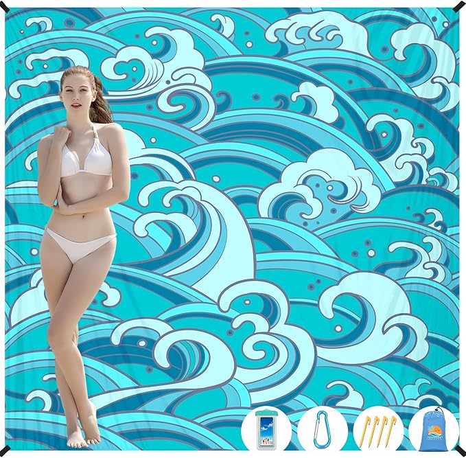 - ๐BIG BEACH BLANKET:Durable and fast drying,can also be used as a canopy,sunshade,tent,toddler crawling mat,picnic mat,first aid mat,better professional fabric sewing without irritating the skin,providing you a good sense of use.