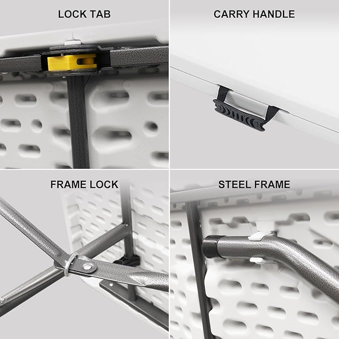 - Versatile 8Ft Folding Table:Folding table is perfect for events like parties, picnics, and camping. It's designed for easy setup and takedown, making it an ideal portable folding table. Suitable for both indoor and outdoor use, folding table for outside is durable and lightweight.